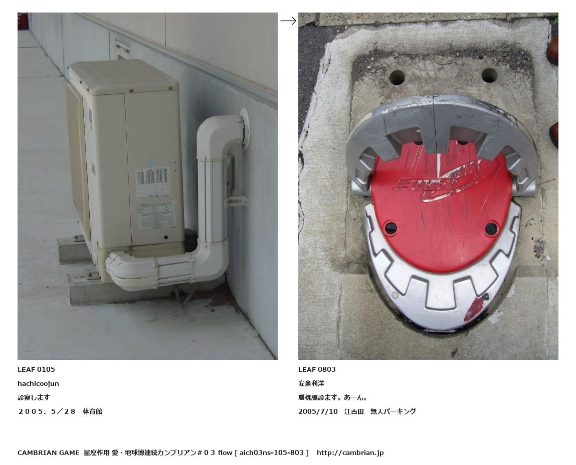 LEAF 0091フローに加えるLEAF 0105hachicoojun診察します2005.5/28 体育館↑ここから上をフローから外す↓ここから下をフローから外すLEAF 0803安斎利洋扁桃腺診ます。あーん。2005/7/10 江古田 無人パーキングLEAF 0884フローに加える