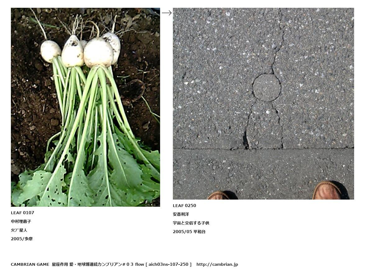 LEAF 0071フローに加えるLEAF 0107中村理恵子火ブ星人2005/多摩↑ここから上をフローから外す↓ここから下をフローから外すLEAF 0250安斎利洋宇宙と交信する子供2005/05 平和台LEAF 0303フローに加える