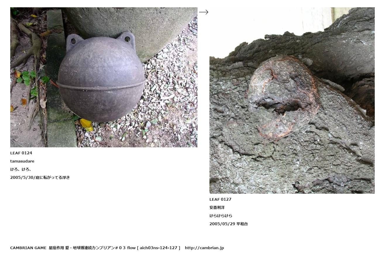 LEAF 0027フローに加えるLEAF 0124tamasudareけろ、けろ、2005/5/30/庭に転がってる浮き↑ここから上をフローから外す↓ここから下をフローから外すLEAF 0127安斎利洋けらけらけら2005/05/29 平和台LEAF 0153フローに加える