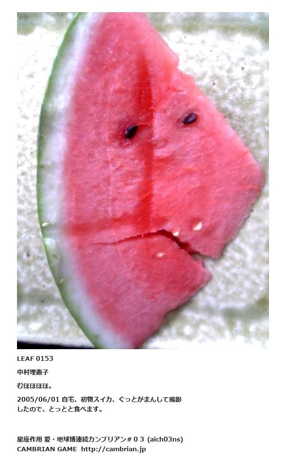 LEAF 0127フローに加えるLEAF 0153中村理恵子むほほほほ。2005/06/01 自宅、初物スイカ、ぐっとがまんして撮影したので、とっとと食べます。LEAF 0191フローに加えるLEAF 0184フローに加える