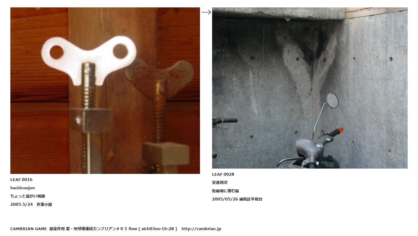 LEAF 0013フローに加えるLEAF 0016hachicoojunちょっと温かい視線2005.5/24 作業小屋↑ここから上をフローから外す↓ここから下をフローから外すLEAF 0028安斎利洋駐輪場に棲む猿2005/05/26 練馬区平和台LEAF 0133フローに加えるLEAF 0045フローに加える