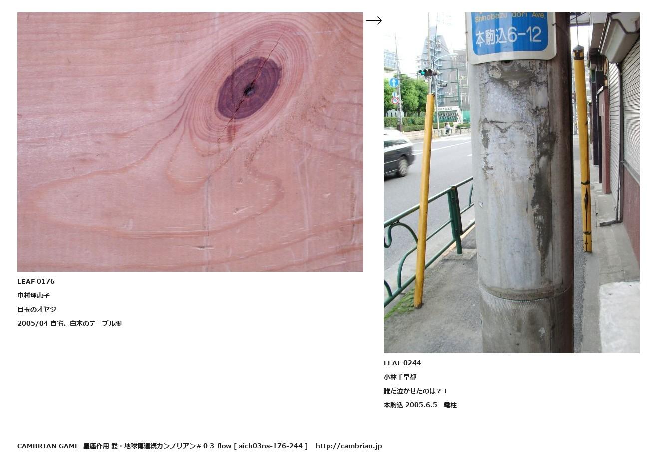 LEAF 0147フローに加えるLEAF 0176中村理恵子目玉のオヤジ2005/04 自宅、白木のテーブル脚↑ここから上をフローから外す↓ここから下をフローから外すLEAF 0244小林千早都誰だ泣かせたのは?!本駒込 2005.6.5 電柱LEAF 0246フローに加える