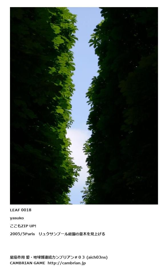 LEAF 0018yasukoここもZIP UP!2005/5Paris リュクサンブール庭園の並木を見上げる