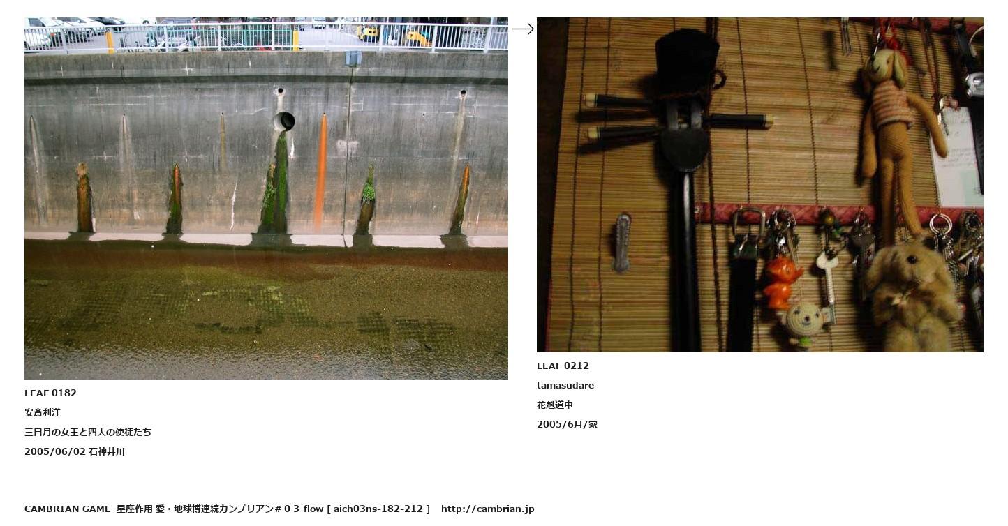 LEAF 0162フローに加えるLEAF 0182安斎利洋三日月の女王と四人の使徒たち2005/06/02 石神井川↑ここから上をフローから外す↓ここから下をフローから外すLEAF 0212tamasudare花魁道中2005/6月/家
