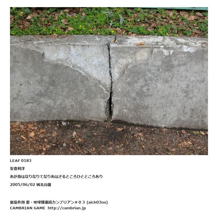 LEAF 0173フローに加えるLEAF 0183安斎利洋あが身はなりなりてなりあはざるところひとところあり2005/06/02 城北公園LEAF 0266フローに加えるLEAF 0189フローに加える