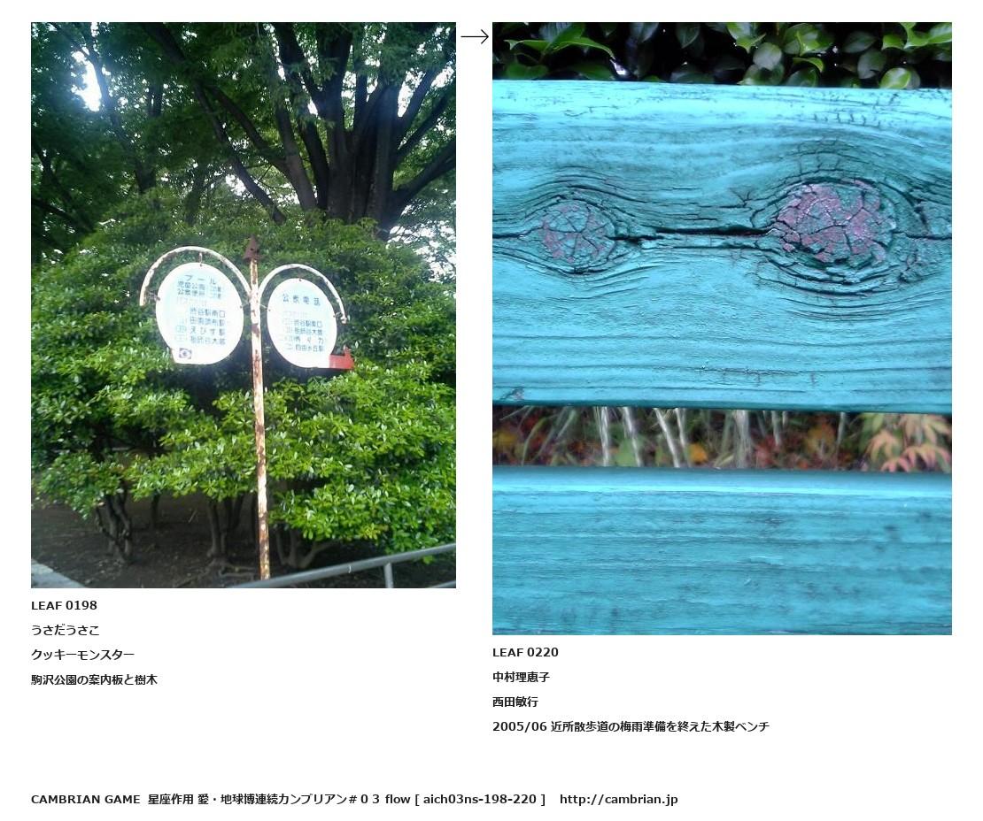 LEAF 0179フローに加えるLEAF 0198うさだうさこクッキーモンスター駒沢公園の案内板と樹木↑ここから上をフローから外す↓ここから下をフローから外すLEAF 0220中村理恵子西田敏行2005/06 近所散歩道の梅雨準備を終えた木製ベンチLEAF 0229フローに加える