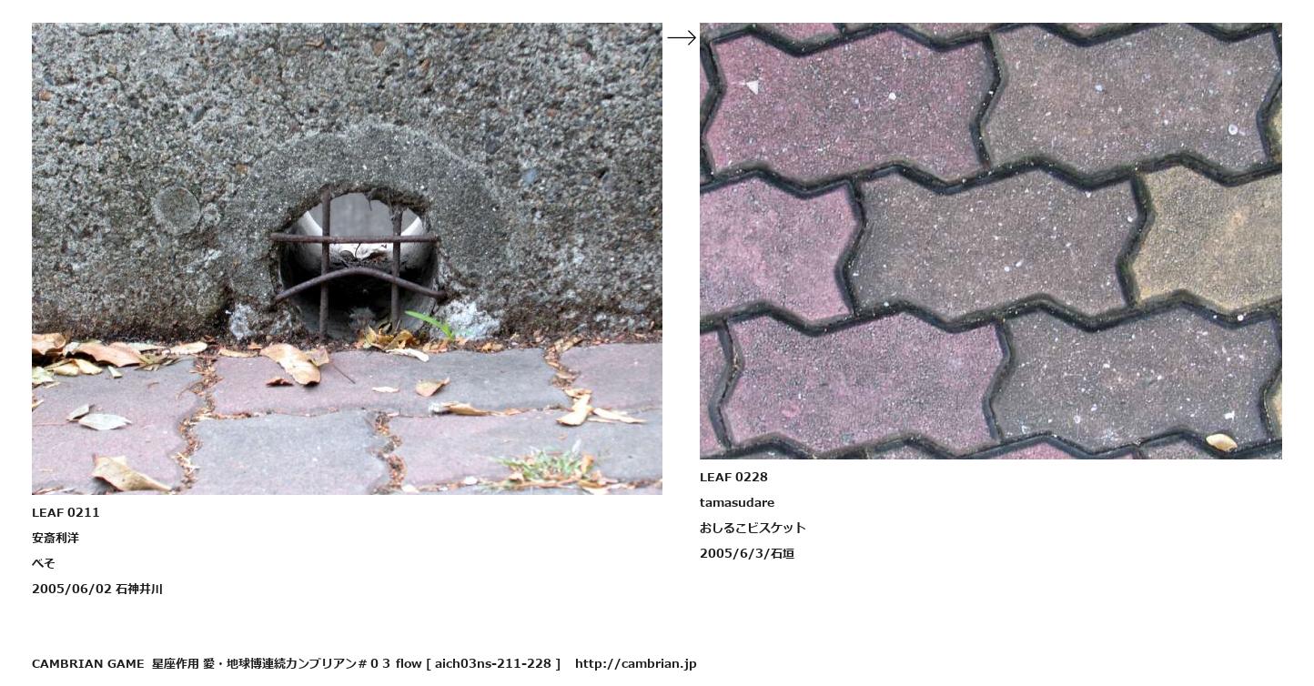 LEAF 0181フローに加えるLEAF 0211安斎利洋べそ2005/06/02 石神井川↑ここから上をフローから外す↓ここから下をフローから外すLEAF 0228tamasudareおしるこビスケット2005/6/3/石垣LEAF 0299フローに加える