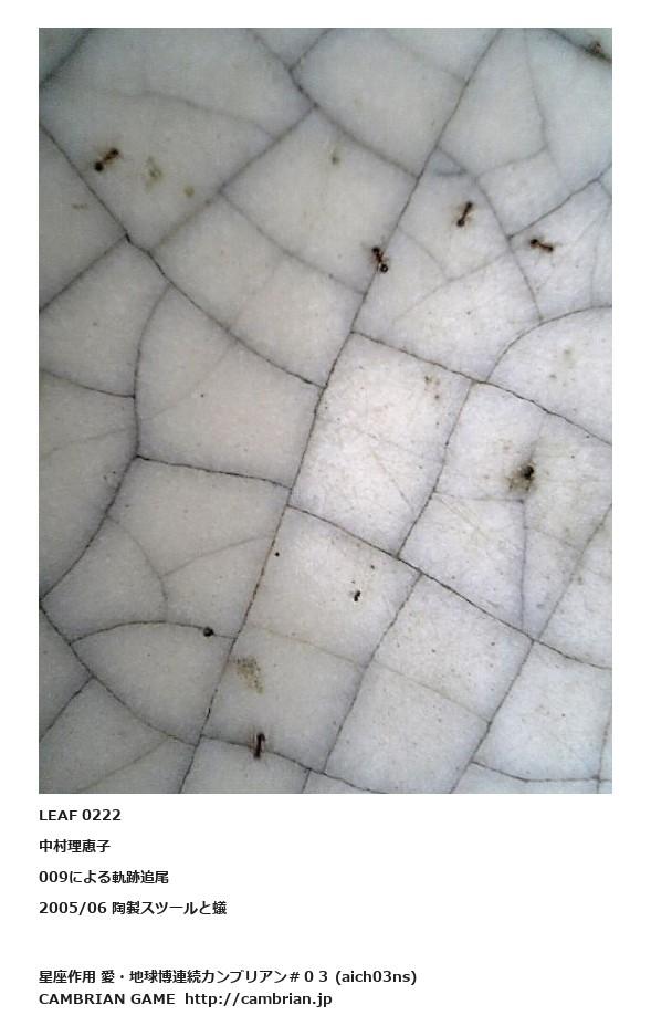 LEAF 0222中村理恵子009による軌跡追尾2005/06 陶製スツールと蟻