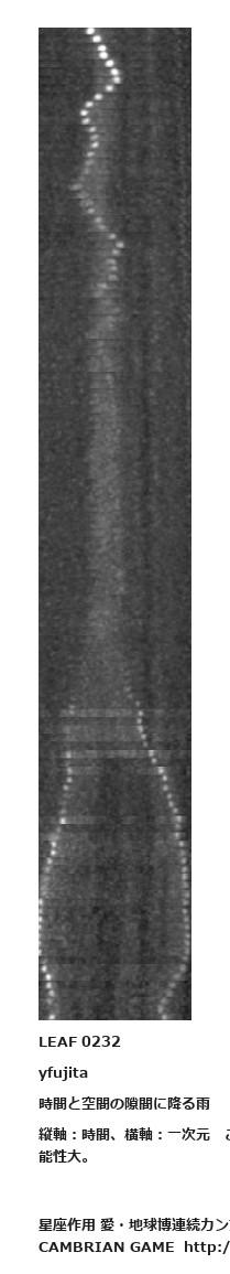 LEAF 0232yfujita時間と空間の隙間に降る雨縦軸:時間、横軸:一次元 ここまでくるとアウトの可能性大。