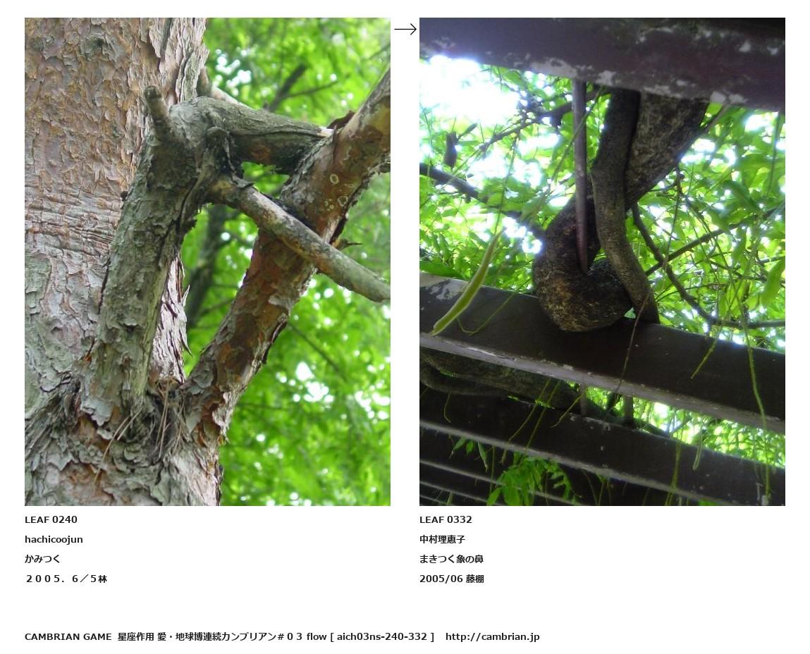 LEAF 0207フローに加えるLEAF 0240hachicoojunかみつく2005.6/5林↑ここから上をフローから外す↓ここから下をフローから外すLEAF 0332中村理恵子まきつく象の鼻2005/06 藤棚LEAF 0631フローに加える