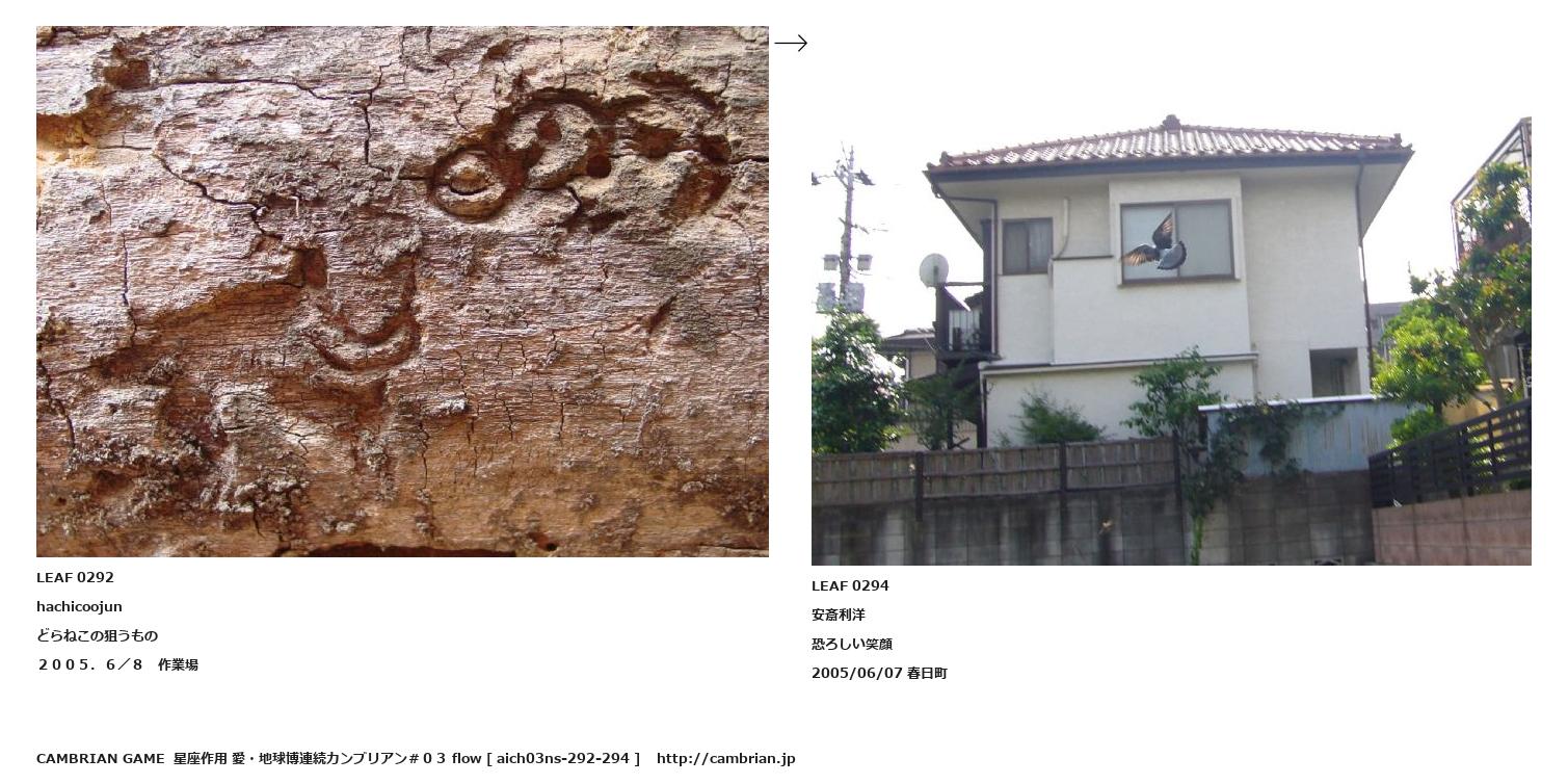 LEAF 0006フローに加えるLEAF 0292hachicoojunどらねこの狙うもの2005.6/8 作業場↑ここから上をフローから外す↓ここから下をフローから外すLEAF 0294安斎利洋恐ろしい笑顔2005/06/07 春日町