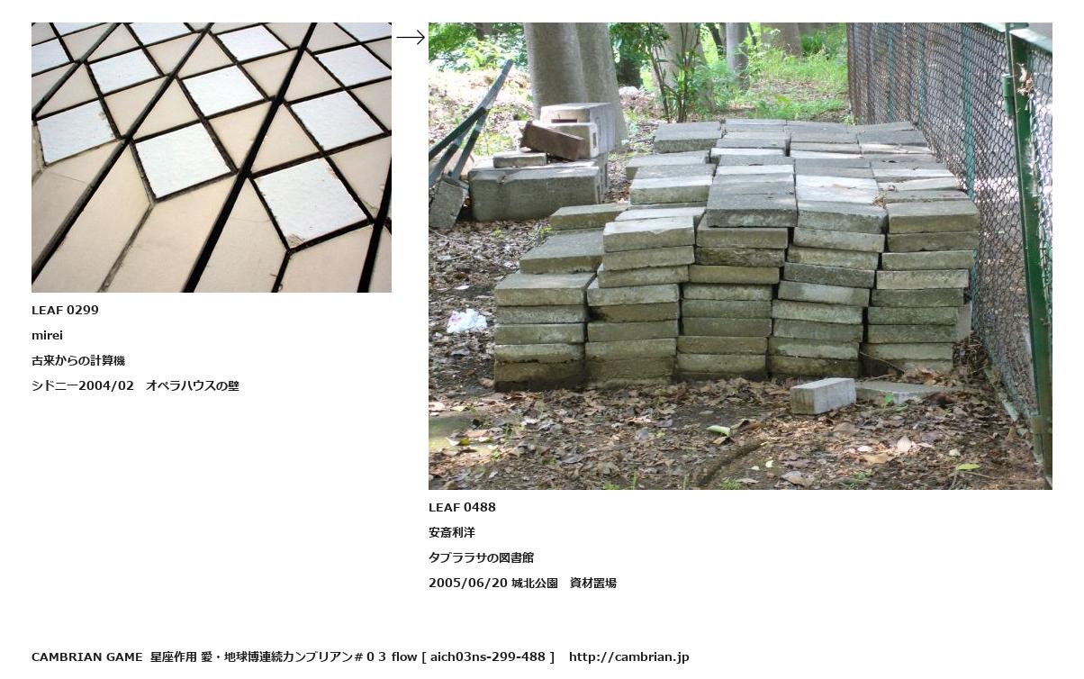 LEAF 0228フローに加えるLEAF 0299mirei古来からの計算機シドニー2004/02 オペラハウスの壁↑ここから上をフローから外す↓ここから下をフローから外すLEAF 0488安斎利洋タブララサの図書館2005/06/20 城北公園 資材置場LEAF 0656フローに加える