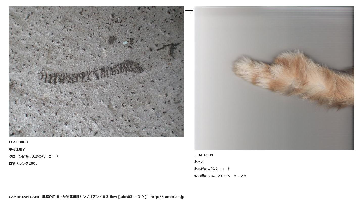 LEAF 0002フローに加えるLEAF 0003中村理恵子クローン情報;天然のバーコード自宅ベランダ2005↑ここから上をフローから外す↓ここから下をフローから外すLEAF 0009あっこある種の天然バーコード飼い猫の尻尾、2005・5・25LEAF 0063フローに加えるLEAF 0037フローに加えるLEAF 0035フローに加える