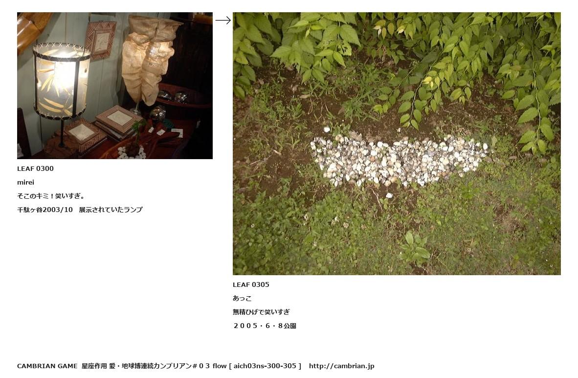 LEAF 0175フローに加えるLEAF 0300mireiそこのキミ!笑いすぎ。千駄ヶ谷2003/10 展示されていたランプ↑ここから上をフローから外す↓ここから下をフローから外すLEAF 0305あっこ無精ひげで笑いすぎ2005・6・8公園