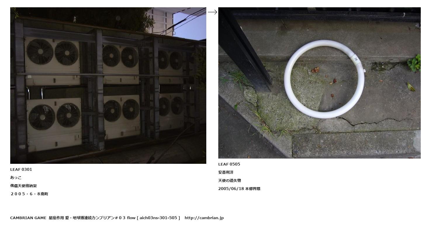 LEAF 0293フローに加えるLEAF 0301あっこ傀儡天使格納架2005・6・8南町↑ここから上をフローから外す↓ここから下をフローから外すLEAF 0505安斎利洋天使の遺失物2005/06/18 本郷界隈