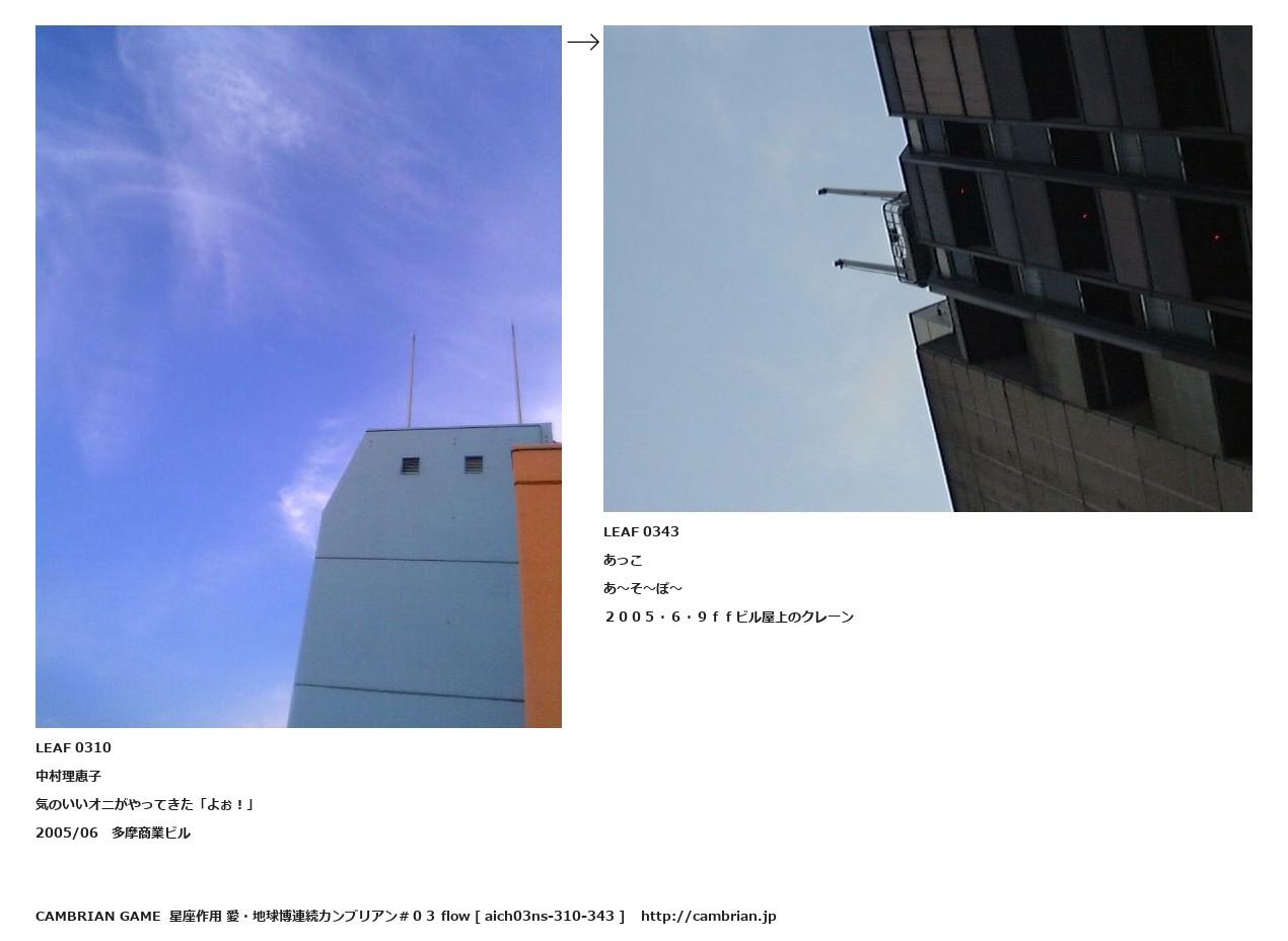 LEAF 0084フローに加えるLEAF 0310中村理恵子気のいいオニがやってきた「よぉ!」2005/06 多摩商業ビル↑ここから上をフローから外す↓ここから下をフローから外すLEAF 0343あっこあ~そ~ぼ~2005・6・9ffビル屋上のクレーンLEAF 0351フローに加える