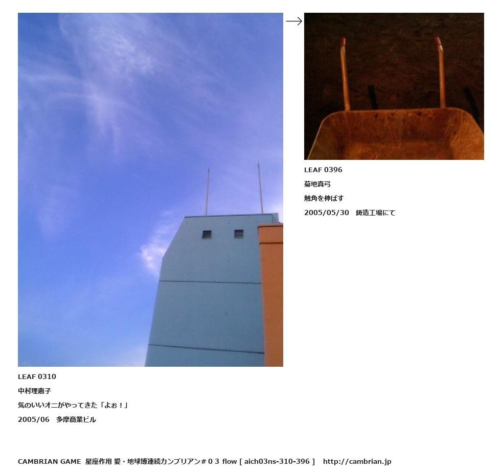 LEAF 0084フローに加えるLEAF 0310中村理恵子気のいいオニがやってきた「よぉ!」2005/06 多摩商業ビル↑ここから上をフローから外す↓ここから下をフローから外すLEAF 0396菊地真弓触角を伸ばす2005/05/30 鋳造工場にて