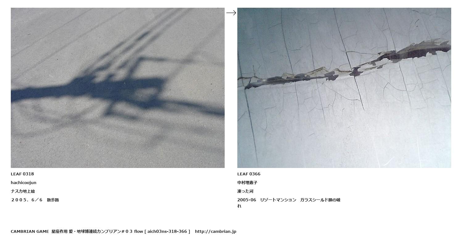 LEAF 0209フローに加えるLEAF 0318hachicoojunナスカ地上絵2005.6/6 散歩路↑ここから上をフローから外す↓ここから下をフローから外すLEAF 0366中村理恵子凍った河2005・06 リゾートマンション ガラスシールド膜の破れLEAF 0771フローに加える