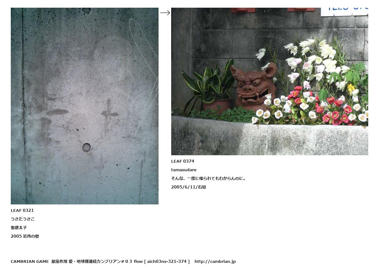 LEAF 0246フローに加えるLEAF 0321うさだうさこ聖徳太子2005 近所の壁↑ここから上をフローから外す↓ここから下をフローから外すLEAF 0374tamasudareそんな、一度に喋られてもわからんのに。2005/6/11/石垣