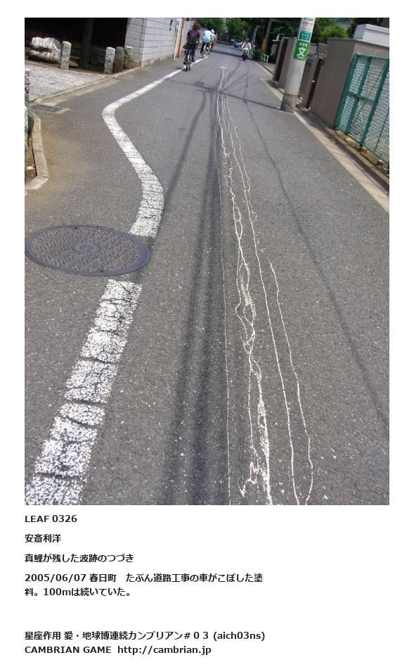 LEAF 0326安斎利洋真鯉が残した波跡のつづき2005/06/07 春日町 たぶん道路工事の車がこぼした塗料。100mは続いていた。