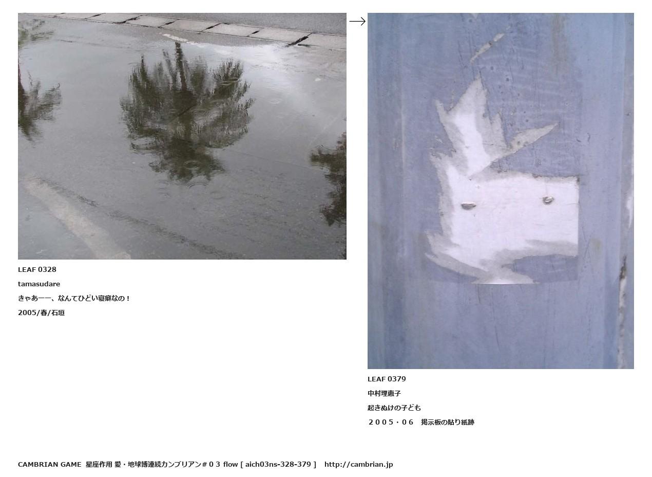 LEAF 0276フローに加えるLEAF 0328tamasudareきゃあーー、なんてひどい寝癖なの!2005/春/石垣↑ここから上をフローから外す↓ここから下をフローから外すLEAF 0379中村理恵子起きぬけの子ども2005・06 掲示板の貼り紙跡