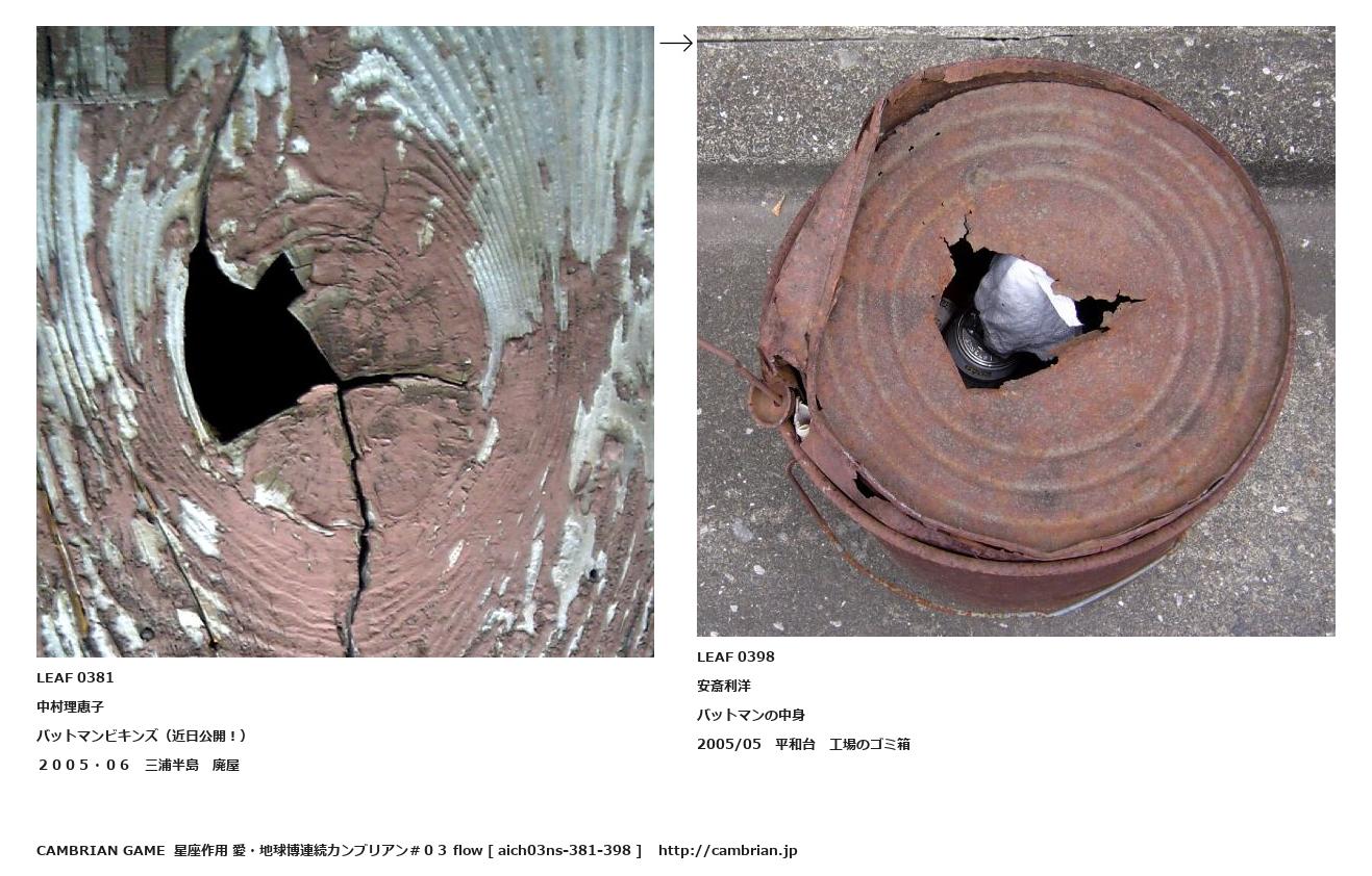 LEAF 0345フローに加えるLEAF 0381中村理恵子バットマンビキンズ(近日公開!)2005・06 三浦半島 廃屋↑ここから上をフローから外す↓ここから下をフローから外すLEAF 0398安斎利洋バットマンの中身2005/05 平和台 工場のゴミ箱LEAF 0478フローに加える