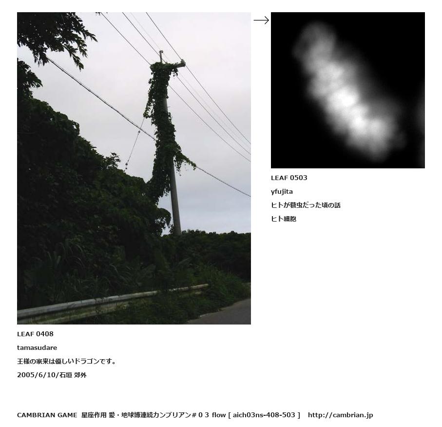 LEAF 0349フローに加えるLEAF 0408tamasudare王様の家来は優しいドラゴンです。2005/6/10/石垣 郊外↑ここから上をフローから外す↓ここから下をフローから外すLEAF 0503yfujitaヒトが蓑虫だった頃の話ヒト細胞LEAF 0516フローに加える