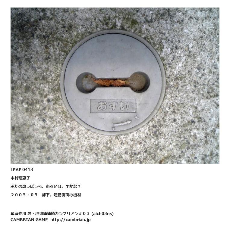 LEAF 0413中村理恵子ぶたの鼻っぱしら、あるいは、牛かな?2005・05 都下、建物側面の機材