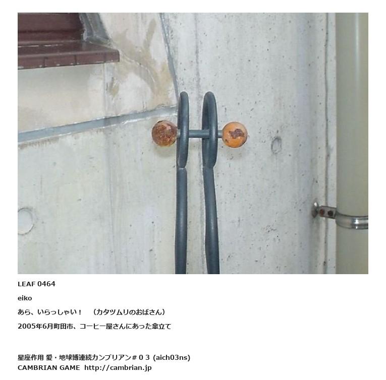 LEAF 0464eikoあら、いらっしゃい! (カタツムリのおばさん)2005年6月町田市、コーヒー屋さんにあった傘立て