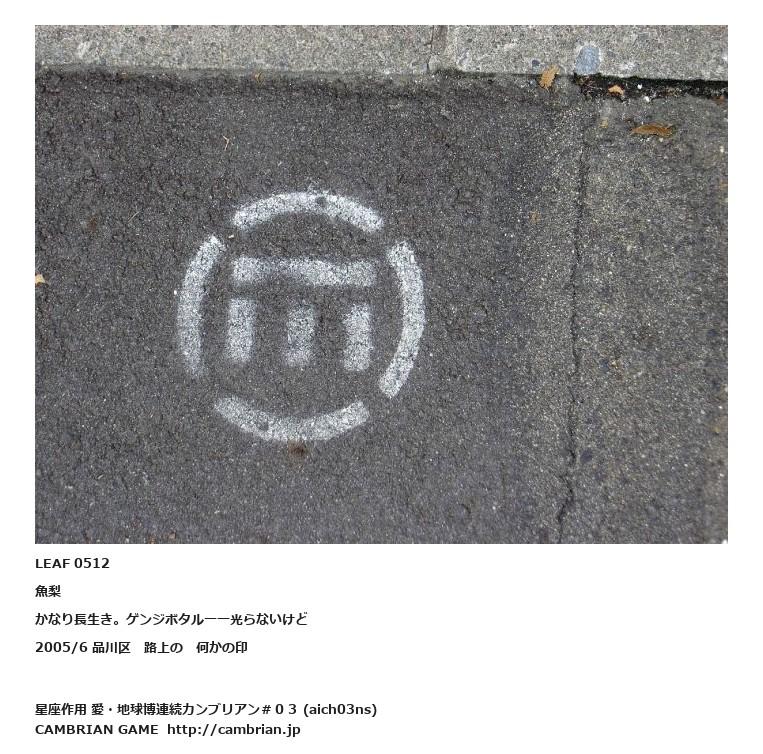 LEAF 0512魚梨かなり長生き。ゲンジボタルーー光らないけど2005/6 品川区 路上の 何かの印
