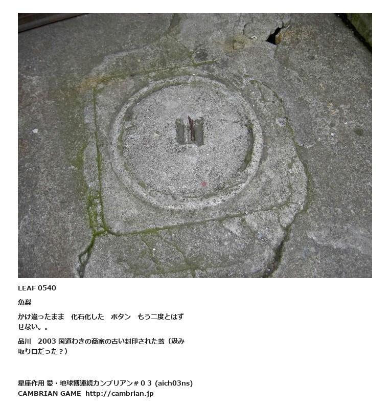 LEAF 0540魚梨かけ違ったまま 化石化した ボタン もう二度とはずせない。。品川 2003 国道わきの商家の古い封印された蓋(汲み取り口だった?)