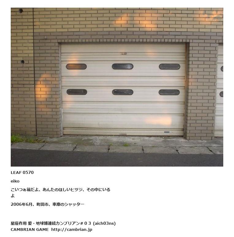 LEAF 0570eikoこいつぁ箱だよ、あんたのほしいヒツジ、その中にいるよ2006年6月、町田市、車庫のシャッター