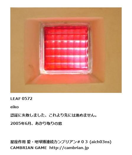 LEAF 0572eiko認証に失敗しました、これより先には進めません。2005年6月、あかり取りの窓