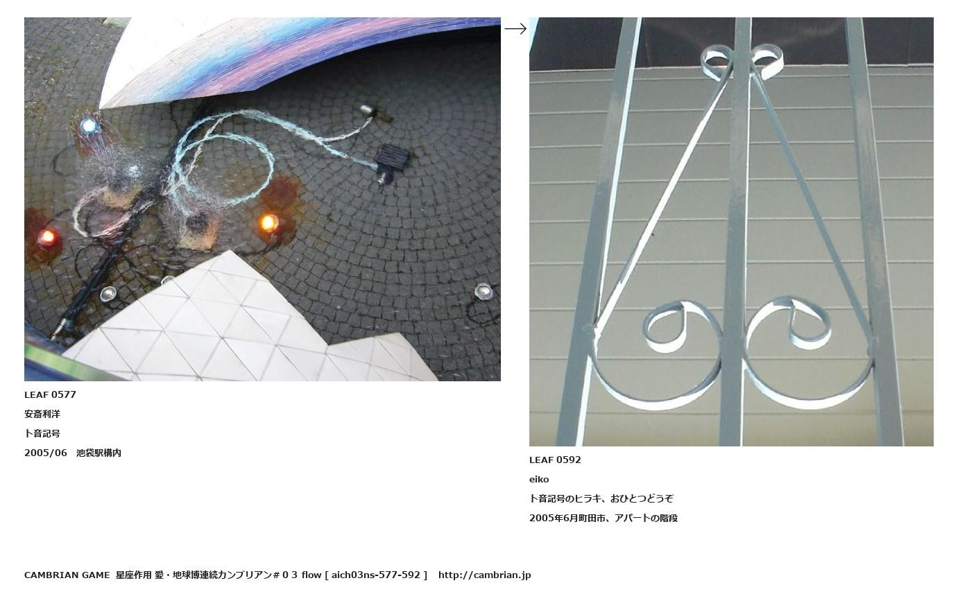 LEAF 0565フローに加えるLEAF 0577安斎利洋ト音記号2005/06 池袋駅構内↑ここから上をフローから外す↓ここから下をフローから外すLEAF 0592eikoト音記号のヒラキ、おひとつどうぞ2005年6月町田市、アパートの階段LEAF 0885フローに加えるLEAF 0636フローに加える