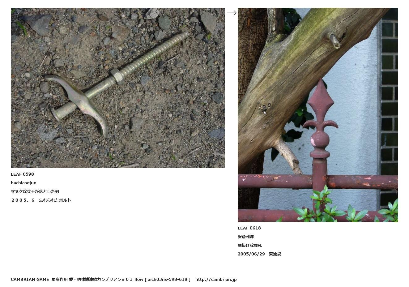 LEAF 0564フローに加えるLEAF 0598hachicoojunマヌケな兵士が落とした剣2005.6 忘れられたボルト↑ここから上をフローから外す↓ここから下をフローから外すLEAF 0618安斎利洋間抜けな戦死2005/06/29 東池袋