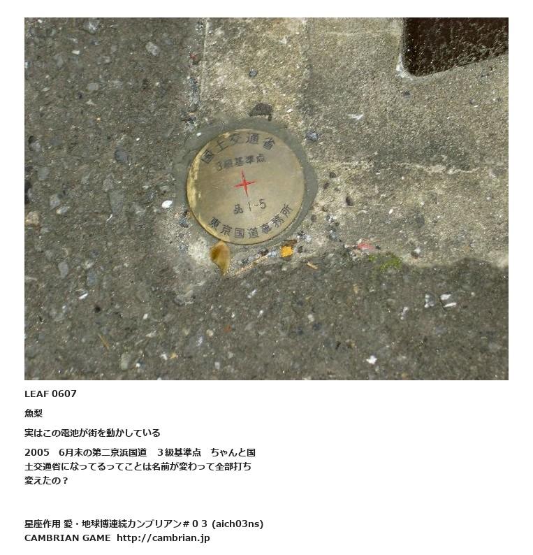 LEAF 0607魚梨実はこの電池が街を動かしている2005 6月末の第二京浜国道 3級基準点 ちゃんと国土交通省になってるってことは名前が変わって全部打ち変えたの?