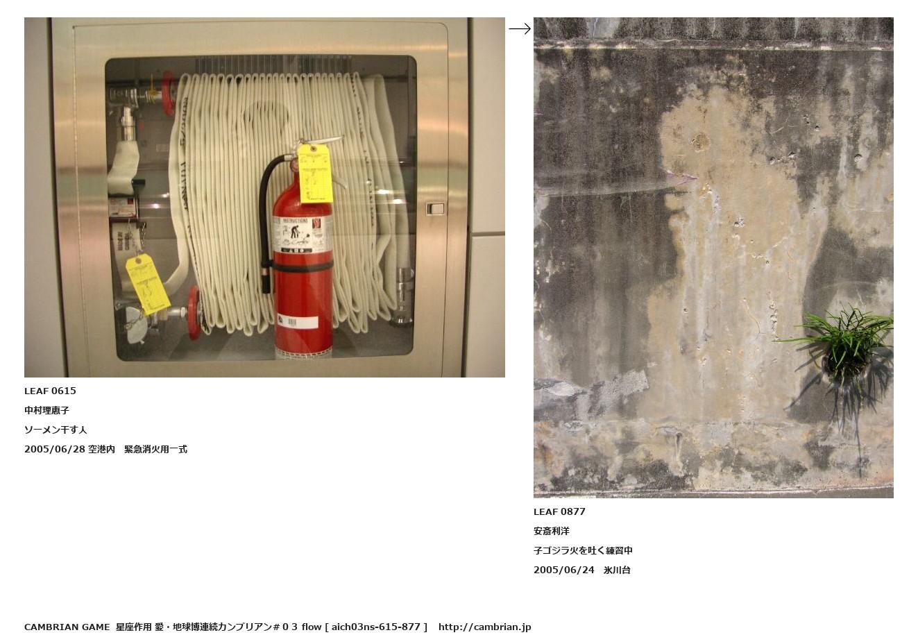 LEAF 0073フローに加えるLEAF 0615中村理恵子ソーメン干す人2005/06/28 空港内 緊急消火用一式↑ここから上をフローから外す↓ここから下をフローから外すLEAF 0877安斎利洋子ゴジラ火を吐く練習中2005/06/24 氷川台LEAF 0888フローに加える
