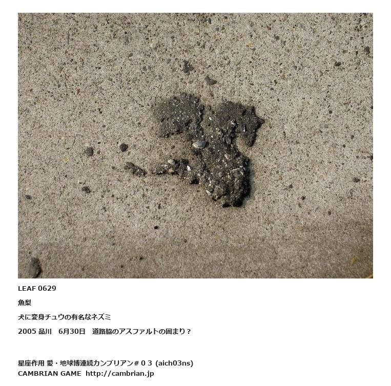 LEAF 0629魚梨犬に変身チュウの有名なネズミ2005 品川 6月30日 道路脇のアスファルトの固まり?