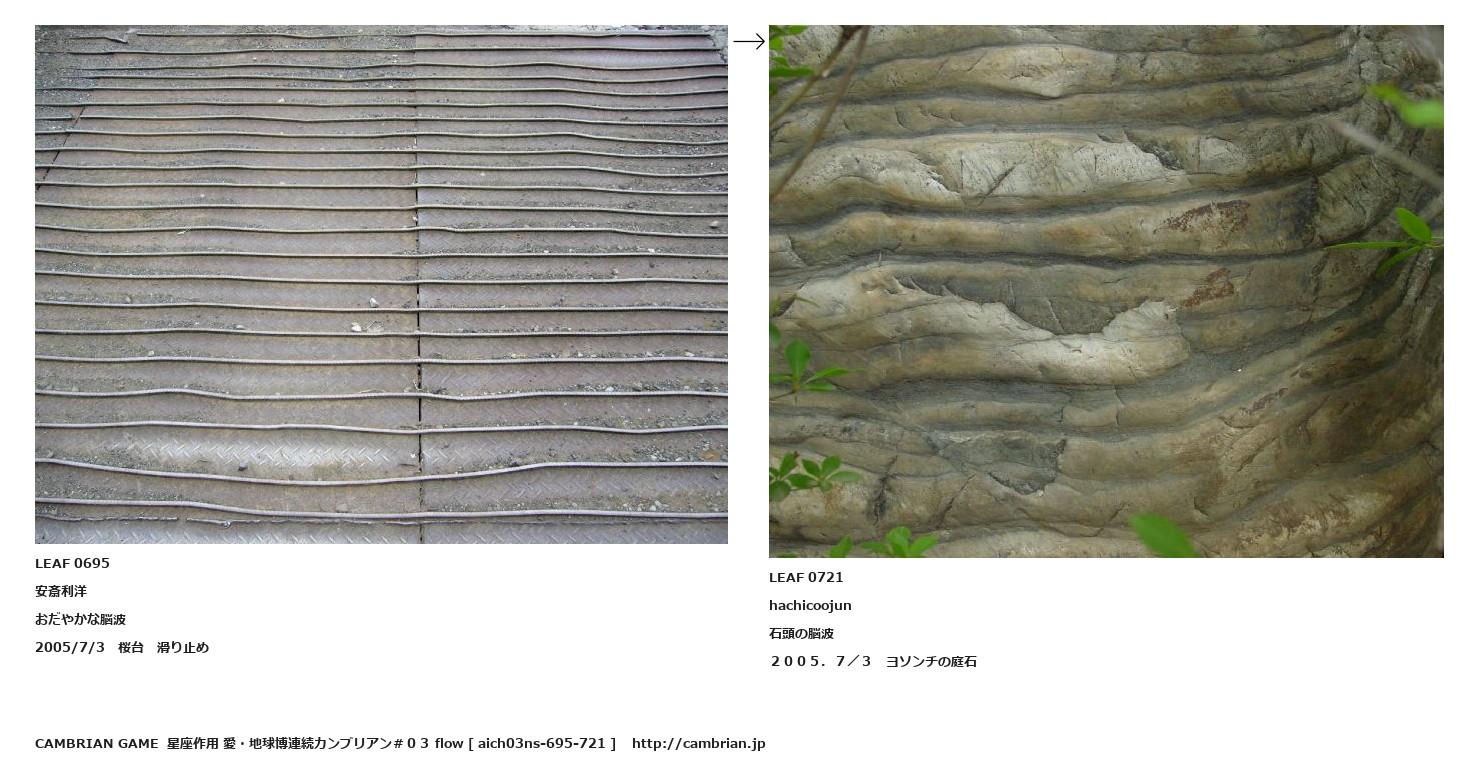 LEAF 0688フローに加えるLEAF 0695安斎利洋おだやかな脳波2005/7/3 桜台 滑り止め↑ここから上をフローから外す↓ここから下をフローから外すLEAF 0721hachicoojun石頭の脳波2005.7/3 ヨソンチの庭石LEAF 0732フローに加える