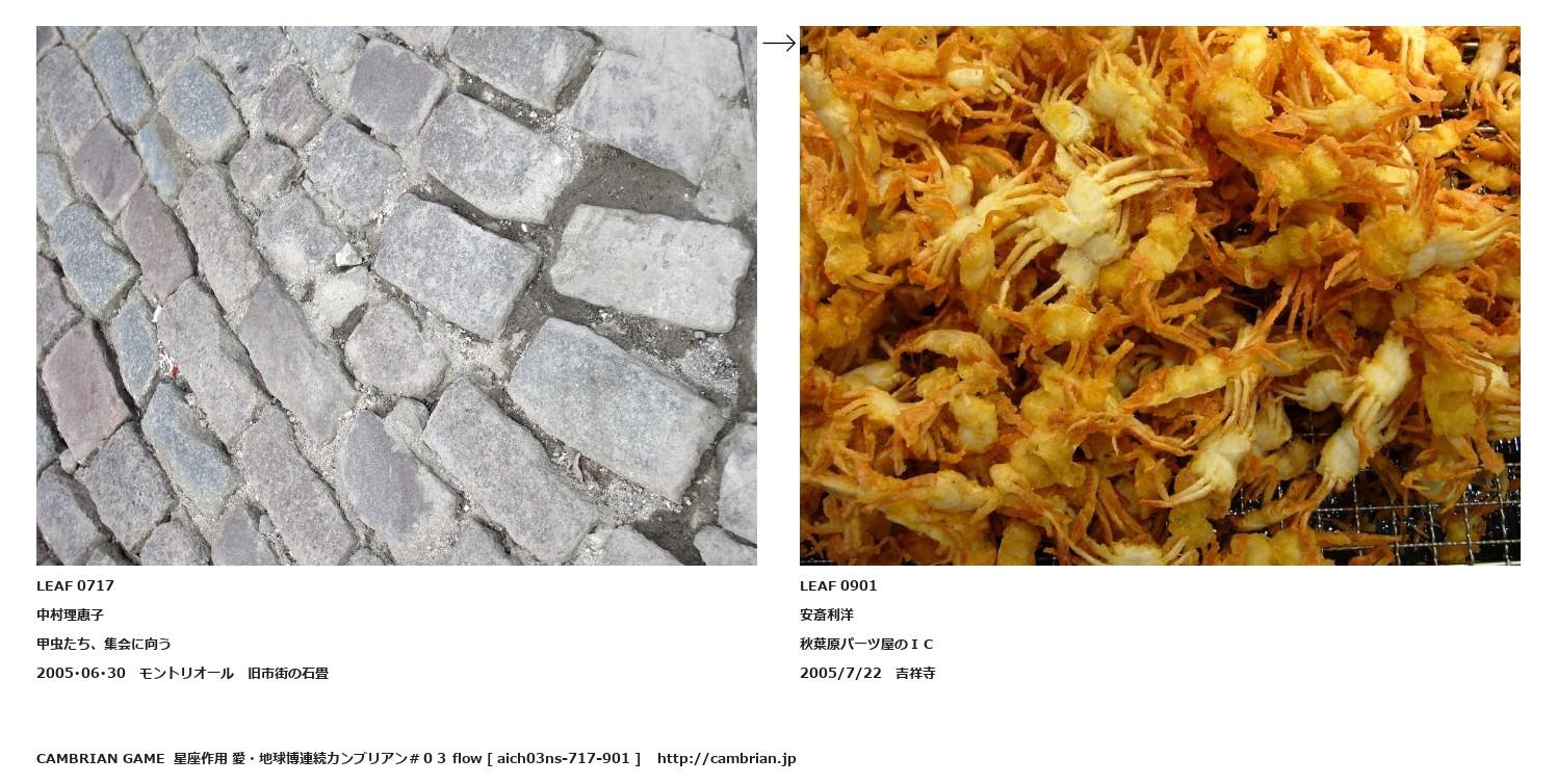 LEAF 0679フローに加えるLEAF 0717中村理恵子甲虫たち、集会に向う2005・06・30 モントリオール 旧市街の石畳↑ここから上をフローから外す↓ここから下をフローから外すLEAF 0901安斎利洋秋葉原パーツ屋のIC2005/7/22 吉祥寺
