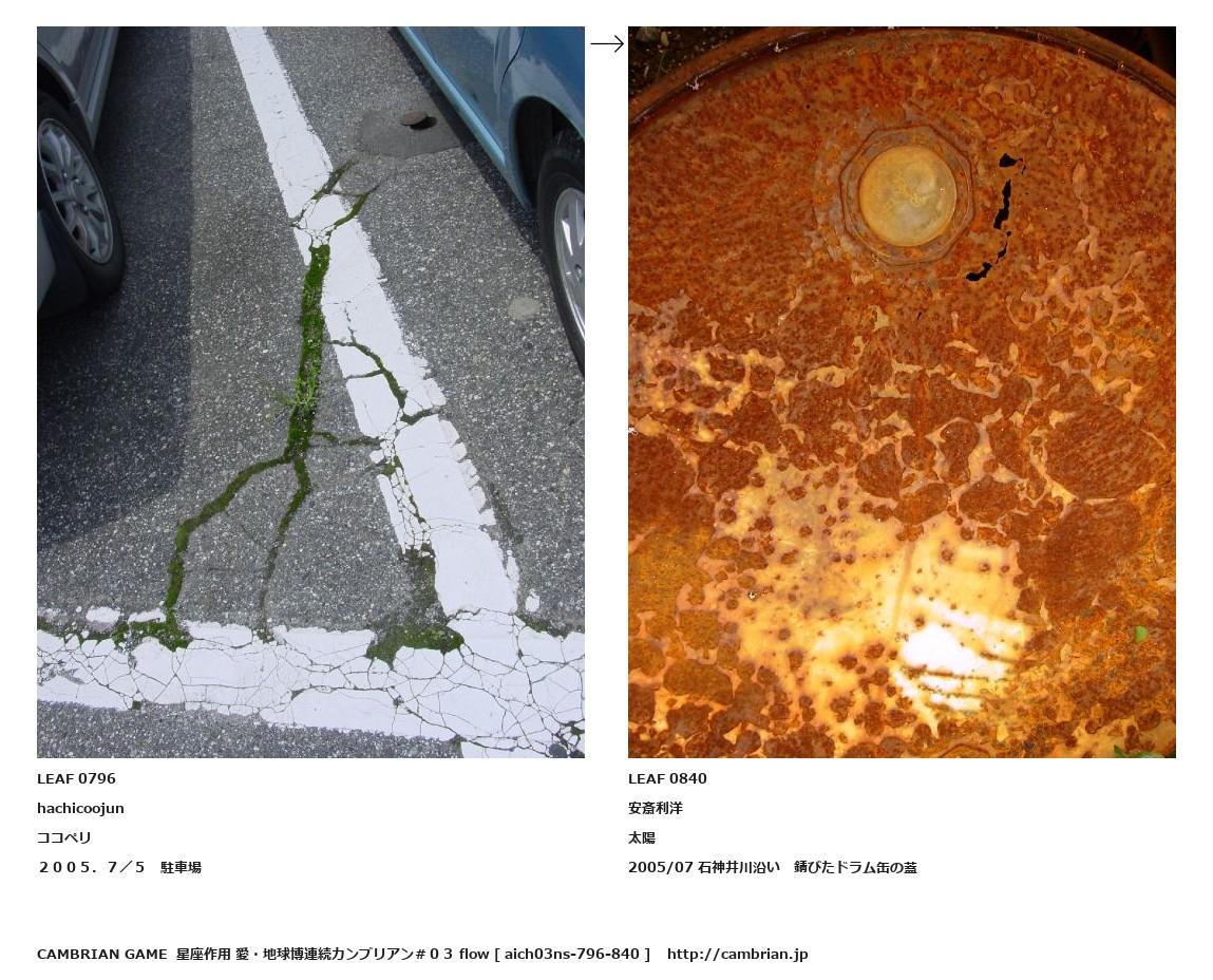 LEAF 0692フローに加えるLEAF 0796hachicoojunココペリ2005.7/5 駐車場↑ここから上をフローから外す↓ここから下をフローから外すLEAF 0840安斎利洋太陽2005/07 石神井川沿い 錆びたドラム缶の蓋LEAF 0843フローに加える