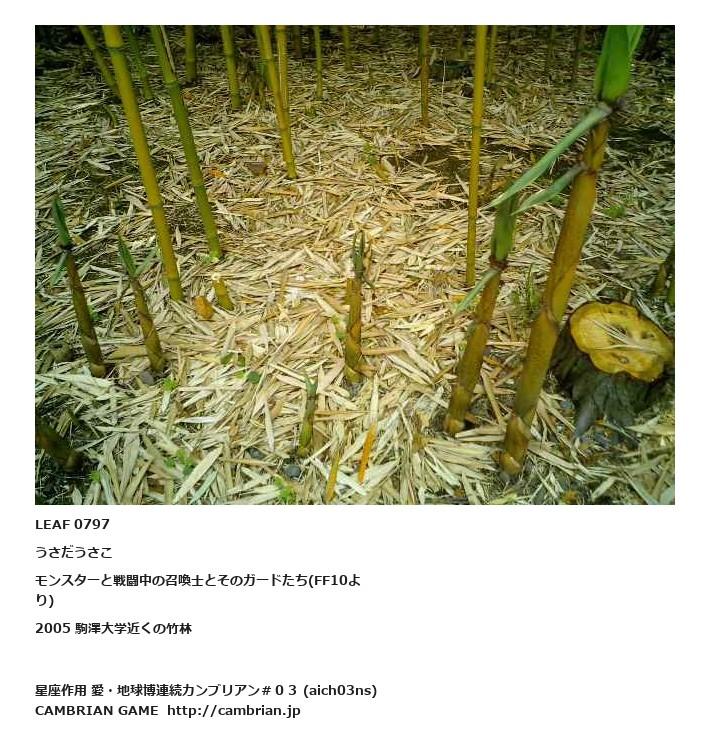 LEAF 0797うさだうさこモンスターと戦闘中の召喚士とそのガードたち(FF10より)2005 駒澤大学近くの竹林