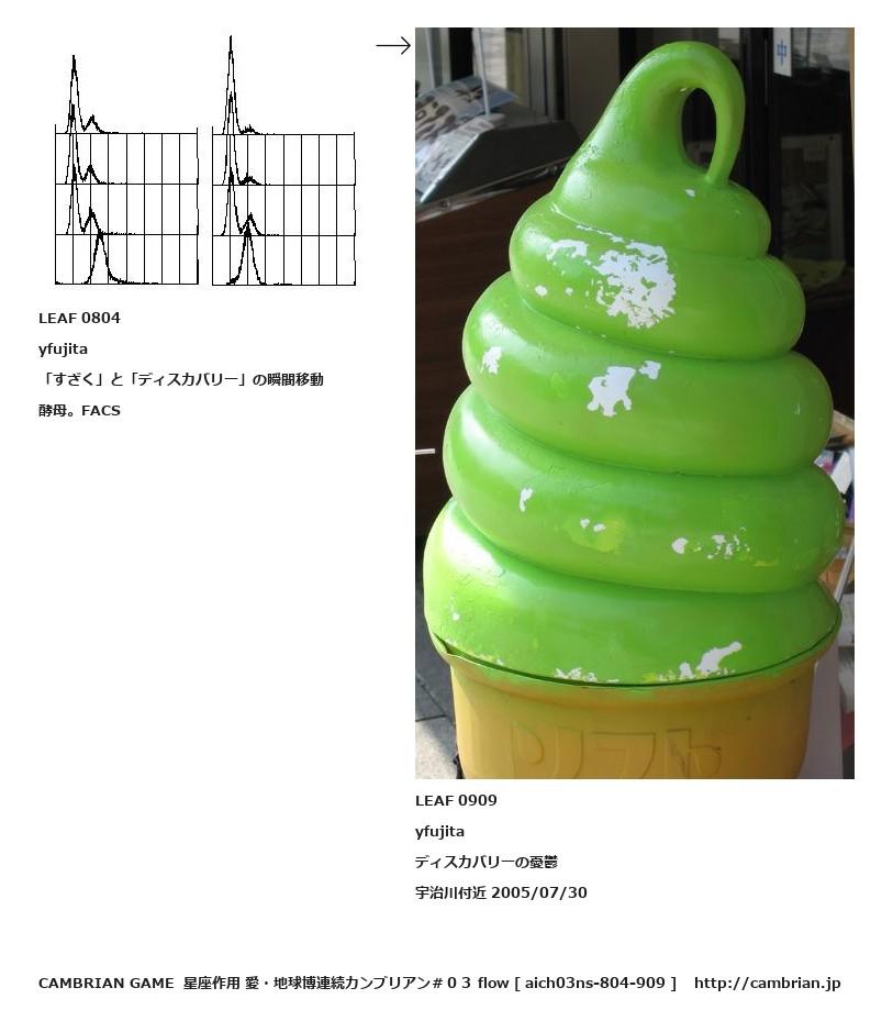 LEAF 0303フローに加えるLEAF 0804yfujita「すざく」と「ディスカバリー」の瞬間移動酵母。FACS↑ここから上をフローから外す↓ここから下をフローから外すLEAF 0909yfujitaディスカバリーの憂鬱宇治川付近 2005/07/30