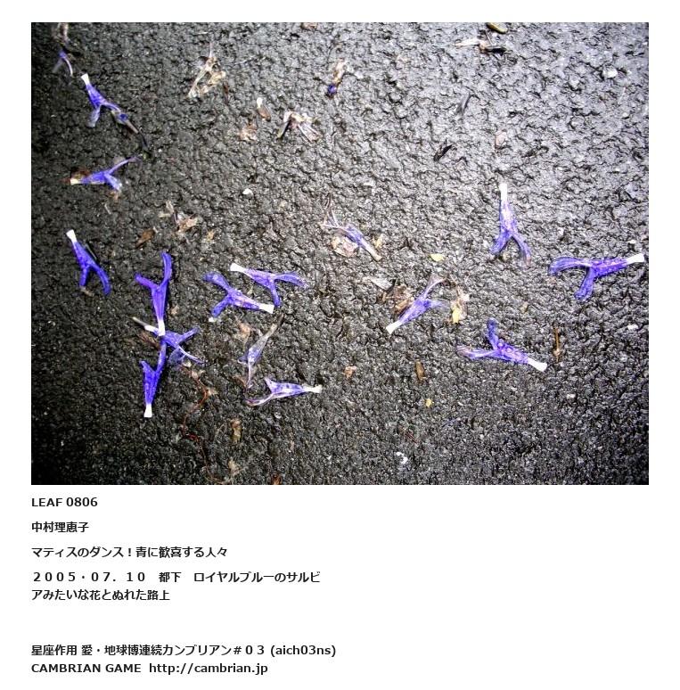 LEAF 0798フローに加えるLEAF 0806中村理恵子マティスのダンス!青に歓喜する人々2005・07.10 都下 ロイヤルブルーのサルビアみたいな花とぬれた路上LEAF 0841フローに加えるLEAF 0817フローに加える