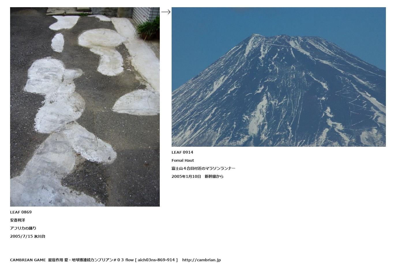 LEAF 0626フローに加えるLEAF 0869安斎利洋アフリカの踊り2005/7/15 氷川台↑ここから上をフローから外す↓ここから下をフローから外すLEAF 0914Fomal Haut富士山4合目付近のマラソンランナー2005年1月10日 新幹線から