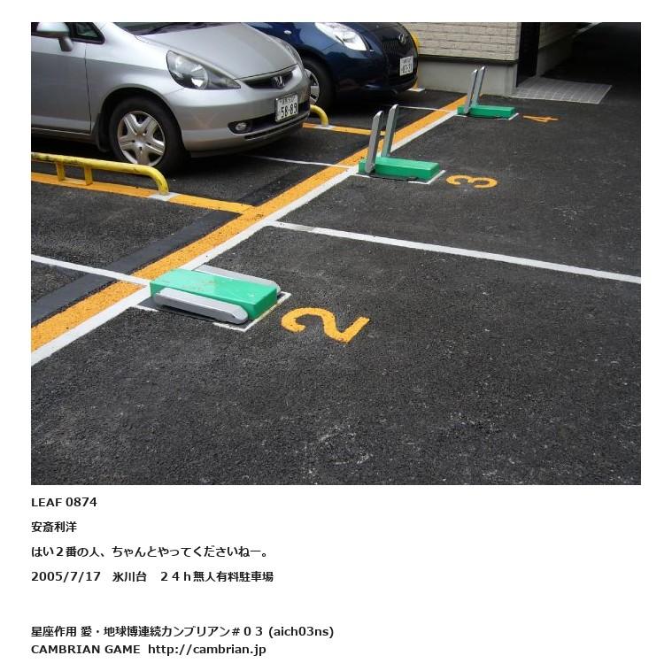 LEAF 0874安斎利洋はい2番の人、ちゃんとやってくださいねー。2005/7/17 氷川台 24h無人有料駐車場