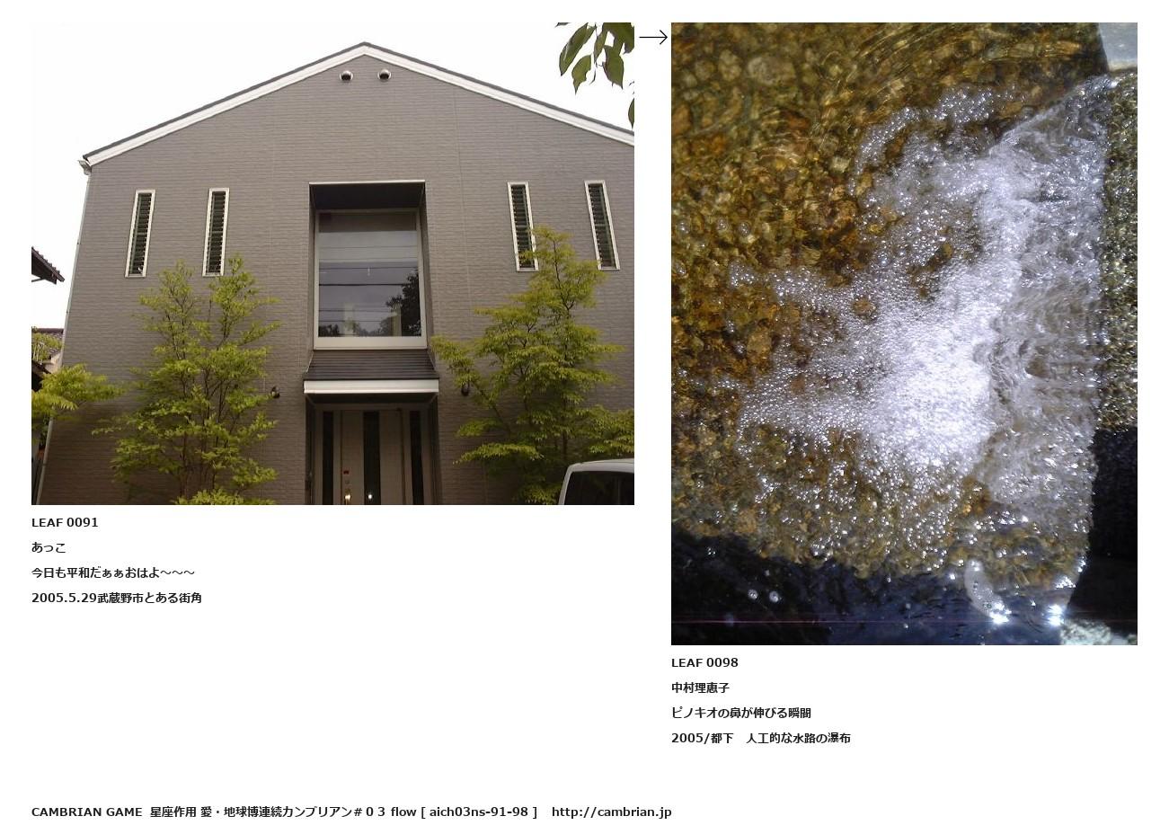 LEAF 0019フローに加えるLEAF 0091あっこ今日も平和だぁぁおはよ~~~2005.5.29武蔵野市とある街角↑ここから上をフローから外す↓ここから下をフローから外すLEAF 0098中村理恵子ピノキオの鼻が伸びる瞬間2005/都下 人工的な水路の瀑布LEAF 0139フローに加える