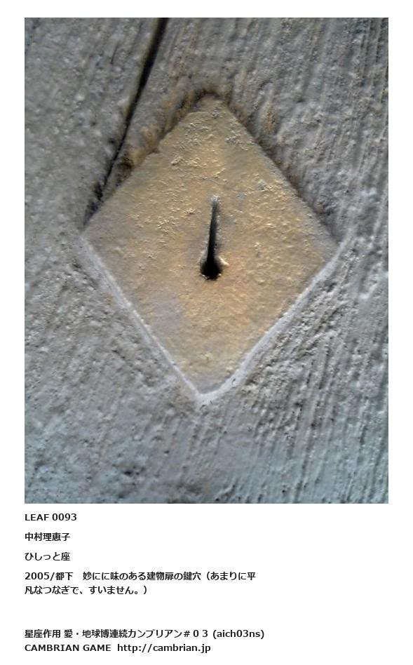 LEAF 0093中村理恵子ひしっと座2005/都下 妙にに味のある建物扉の鍵穴(あまりに平凡なつなぎで、すいません。)