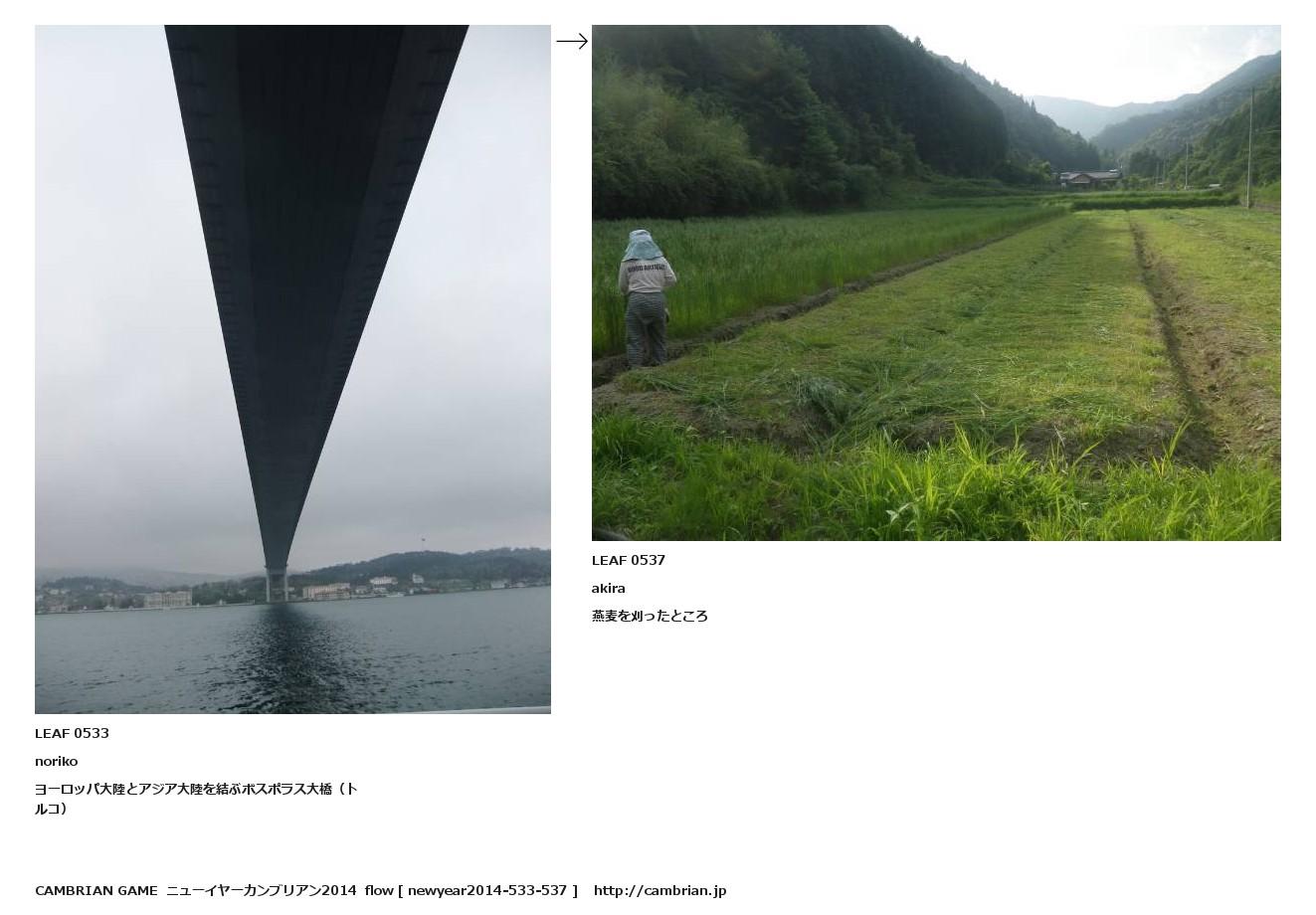 LEAF 0127フローに加えるLEAF 0533norikoヨーロッパ大陸とアジア大陸を結ぶボスポラス大橋(トルコ)↑ここから上をフローから外す↓ここから下をフローから外すLEAF 0537akira燕麦を刈ったところ