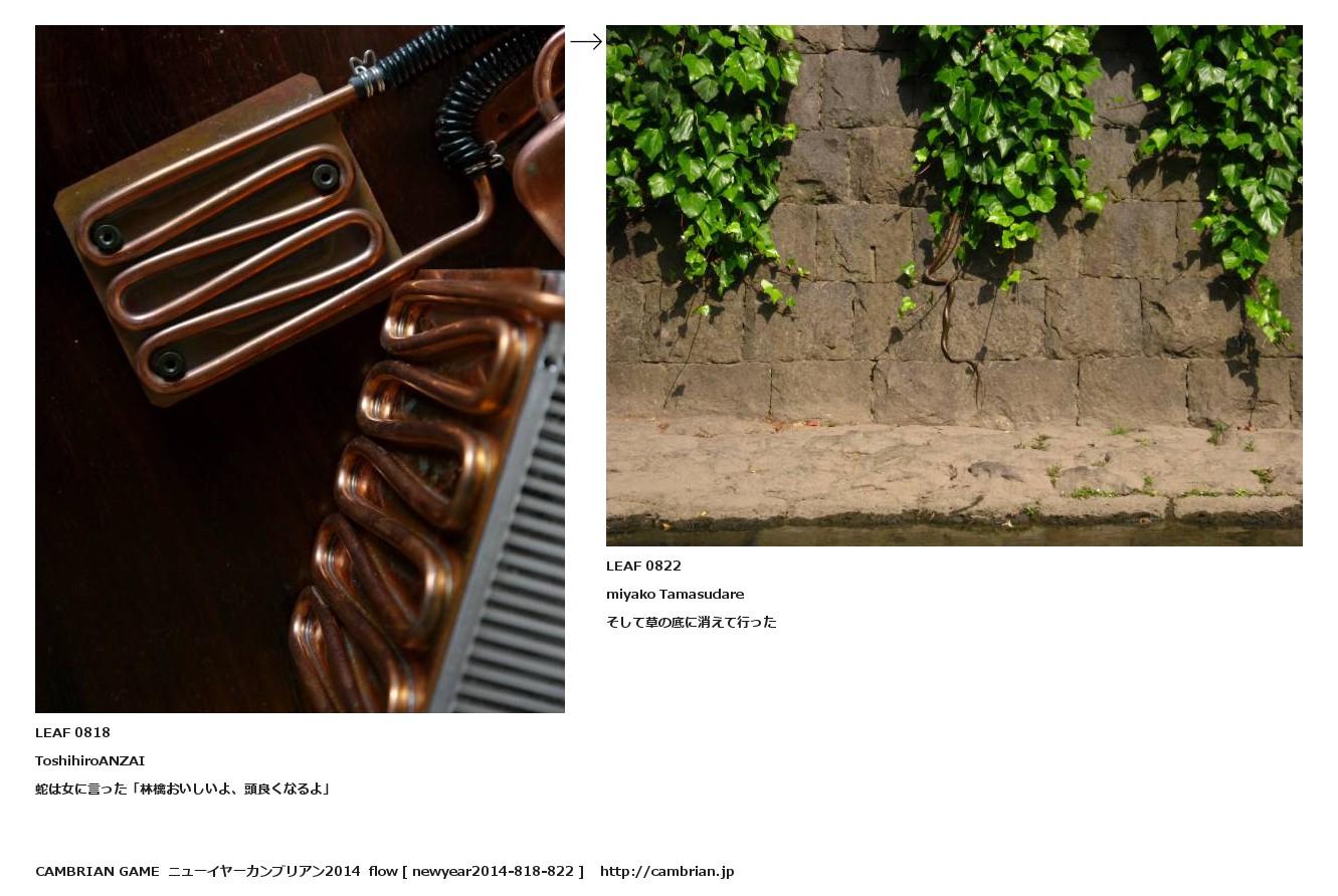 LEAF 0814フローに加えるLEAF 0818ToshihiroANZAI蛇は女に言った「林檎おいしいよ、頭良くなるよ」↑ここから上をフローから外す↓ここから下をフローから外すLEAF 0822miyako Tamasudareそして草の底に消えて行った